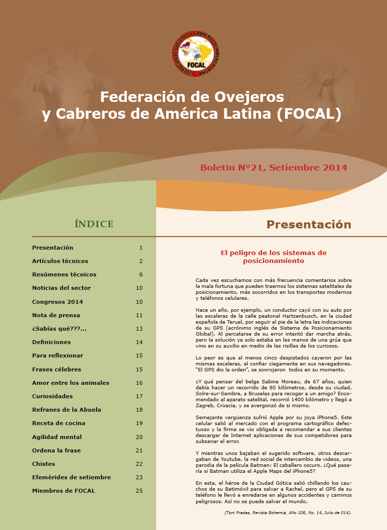 Agradecemos a La Federación de Ovejeros y Cabreros de América Latina (FOCAL) por compartirnos la edición número 23 de su boletín mensual.